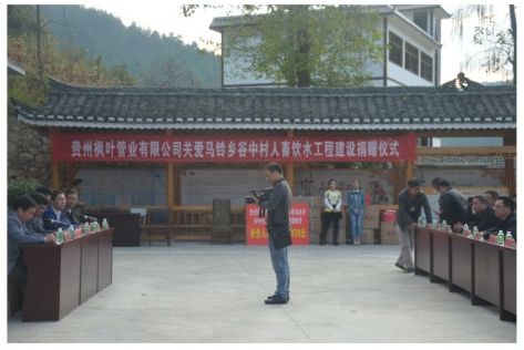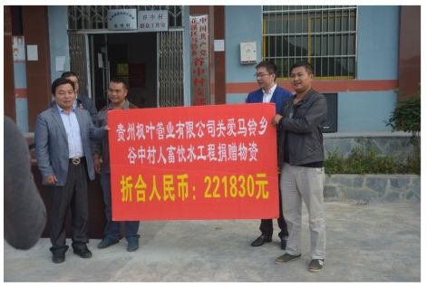 2014年10月24日,貴州青青草免费在线观看视频“關(guān)愛馬鈴鄉穀中村人(rén)蓄飲水工(gōng)程建設”捐贈儀式在(zài)穀中村(cūn)隆重(chóng)舉行,集團(tuán)公司總(zǒng)經理張文龍、貴州青青草免费在线观看视频總經理徐建良及(jí)副總經理王新路共同出席了捐贈儀式,此次捐贈體現了青青草免费在线观看视频扶貧開發情係貧困地區的民生情懷和貴州青青草免费在线观看视频企業熱心公益慈善的良好形象。