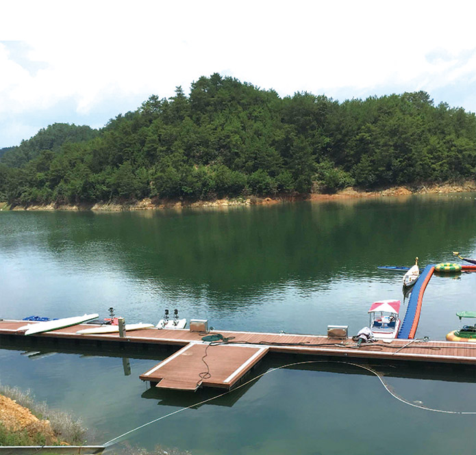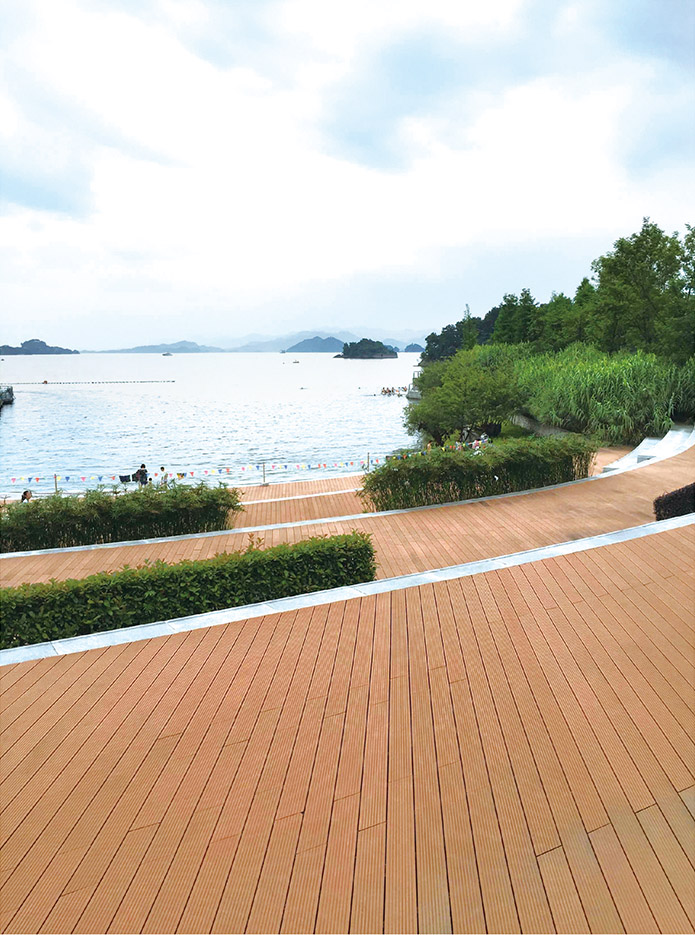 浙江千島湖秀水廣場及遊艇碼頭總麵積(jī)10萬餘平米,木塑使用麵積2萬餘平米,2012年底竣工。目前為千島湖休(xiū)閑、健身的主要場所。