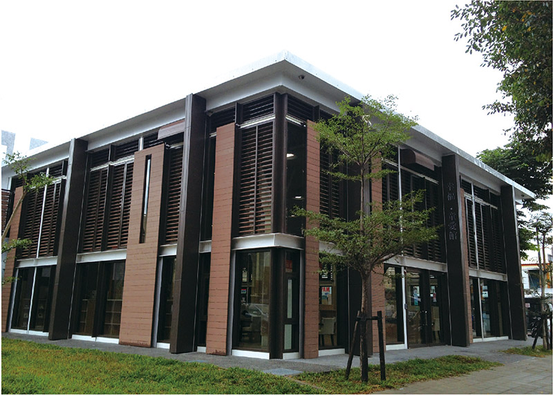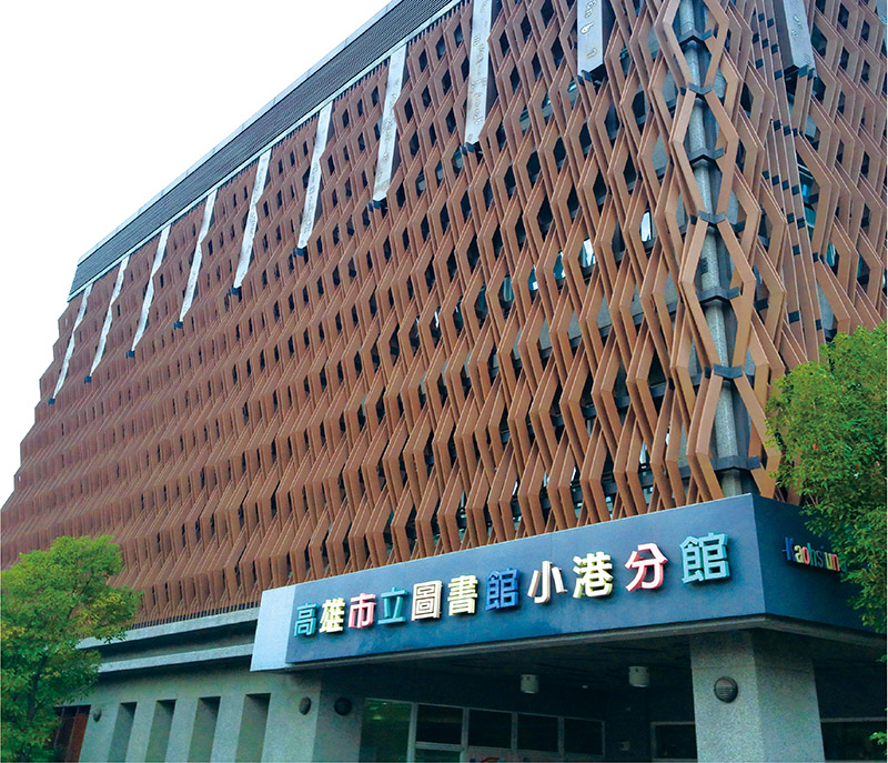台灣高雄市立圖書館外牆裝飾麵積約8000餘平方米,產品在保證美(měi)觀的同時,兼具有隔熱的功(gōng)效,並且不影響采光。安裝完(wán)成後在當地興起(qǐ)了木塑外牆裝(zhuāng)飾(shì)的熱潮。